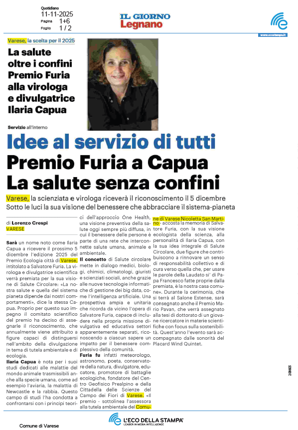 Idee al servizio di tutti: Premio Furia a Ilaria Capua – La salute senza confini