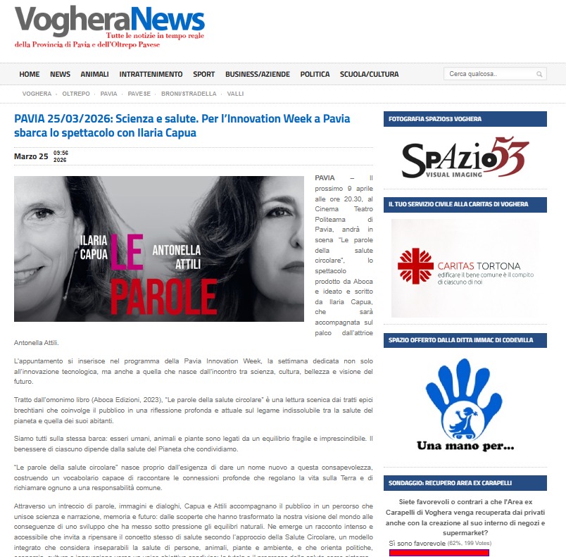 PAVIA 25/03/2026: Scienza e salute. Per l’Innovation Week a Pavia sbarca lo spettacolo con Ilaria Capua