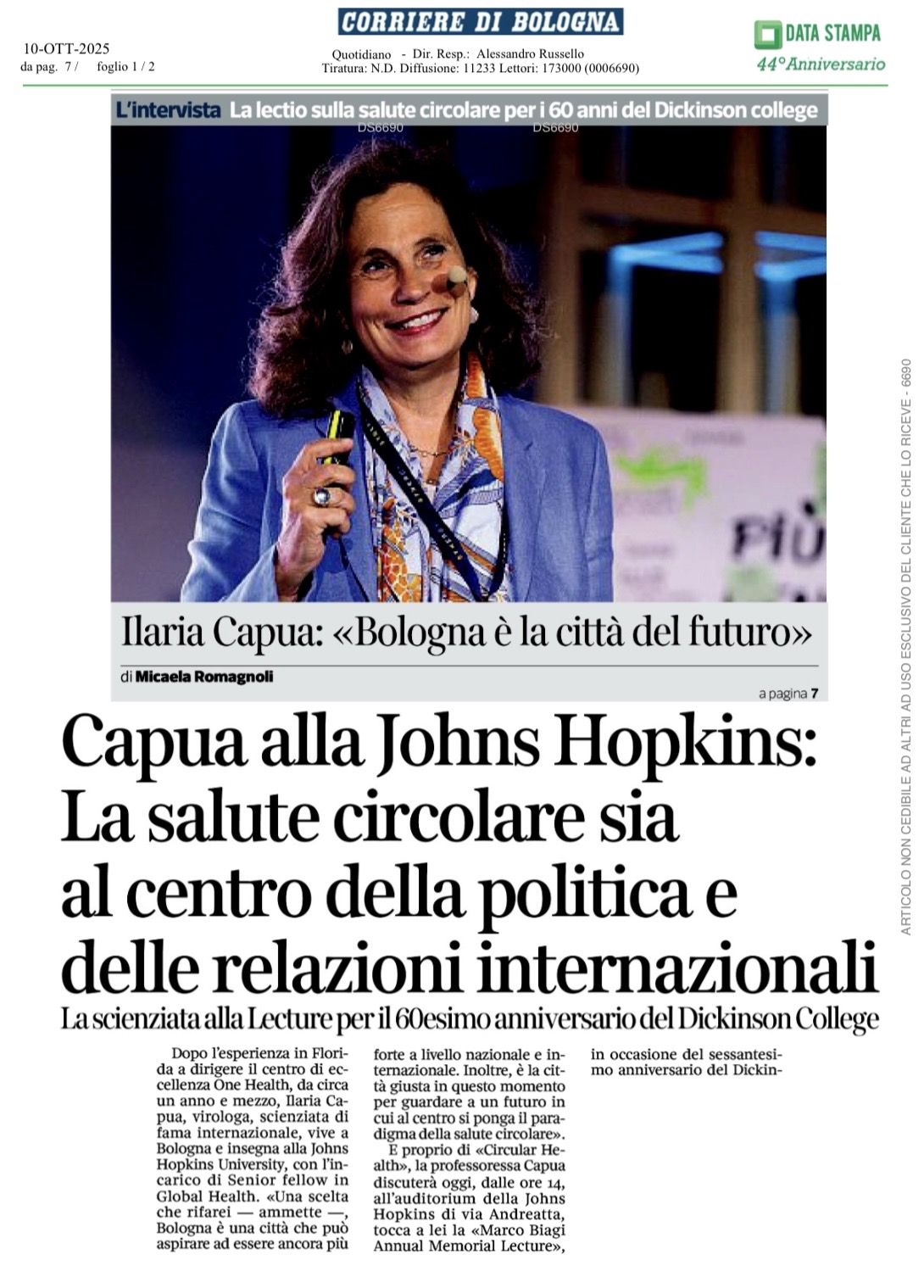 Corriere di Bologna - L’intervista - 10 Ottobre 2025